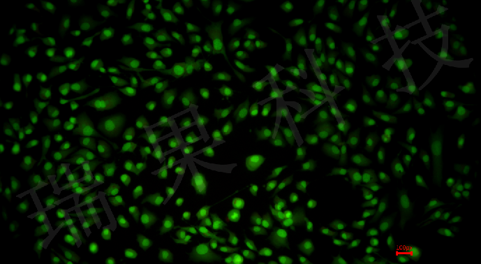 吖啶橙(Acridine Orange, AO)属于三环杂芳香燃料,可以标记DNA、RNA,属于异染性荧光染料。该染料具有膜通透性,能透过细胞膜,使核DNA和RNA染色。因此AO常用于细胞内DNA和RNA进行检测。电荷的AO与单链核酸的磷酸根(带负电荷)产生静电间的吸引结合,这种结合方式主要为AO与RNA的结合,其荧光发射峰为640nm,激发后呈红色荧光,少量结合会呈桔黄色或桔红色荧光。因此,吖啶橙嵌合到双链DNA分子中显绿色,与DNA单链或RNA结合时发桔黄色或橙红色荧光。